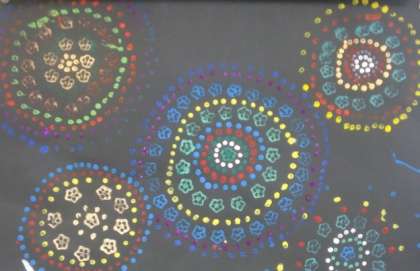 「花火を咲かそう」という作品です。スタンピングの特長を生かして作りました。