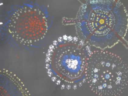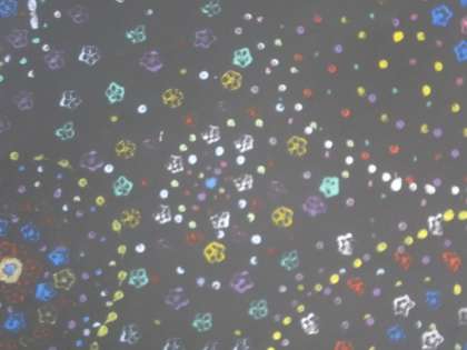 黒色の画用紙に押すと夜空に花火が広がったようです。