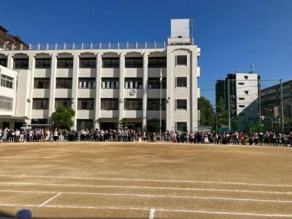 真っ青な空、秋晴れの中、豊仁小学校のスポーツデーを開催しました。