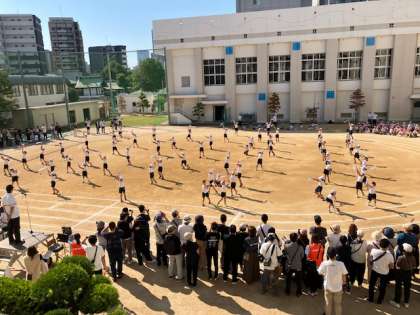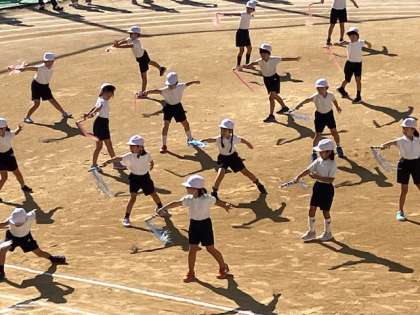 第一部は、2年生と4年生による団体演技と4年生リレー、2年生個人走です。
