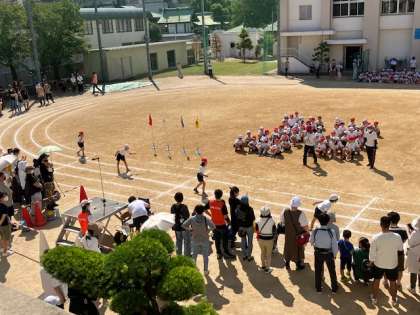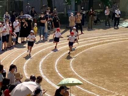 次の種目は、3年生の個人走です。「よ〜い、ドン」の電子ピストル音に緊張感が走ります。みんな、精一杯走り切りました!