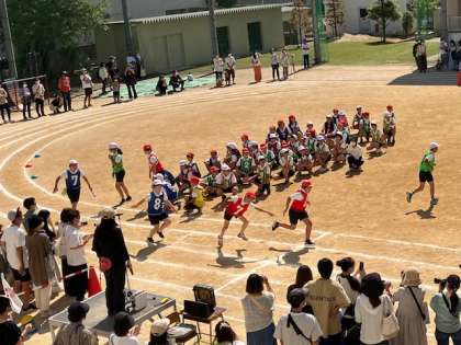 次の種目は、6年生のリレーです。体格も大きくなってスピードに乗る6年生の走りっぷりは、カッコいいだすね!