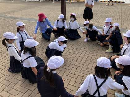 女子は、春の遠足で定番になった「かごめかごめ」です!