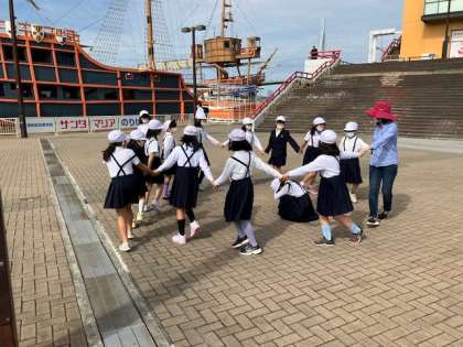 サンタマリア号を下船して、帰る電車まで、少し時間があるので、広場での自由時間になりました。