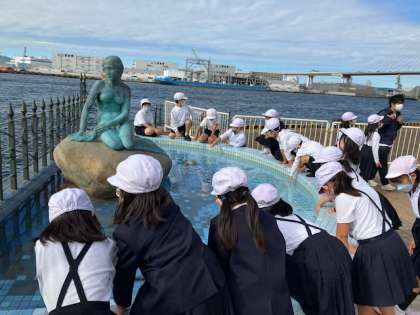 遊びあきた子どもたちは、人魚姫の周りに集まってきました。