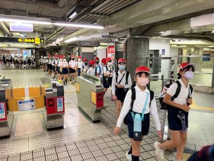 今日は、4年生の校外学習(遠足)です。堺市の大泉緑地公園に行きます。堺では「都会のオアシス」と呼ばれるほど緑豊かな大きな大きな公園です。