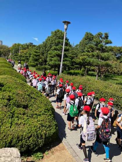 ちゃんと2列で歩きます。