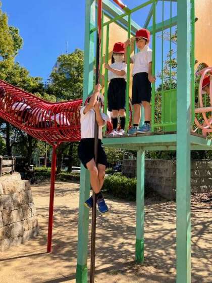 結構、筋肉や平衡感覚が身につきますね。遊具、すごい!