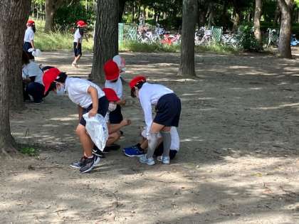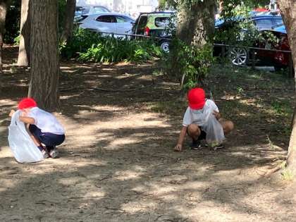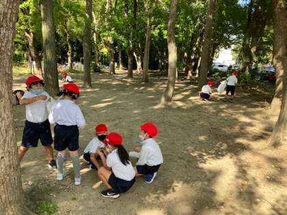 どんどん秋の落ち葉やどんぐりを集めます、集めます!