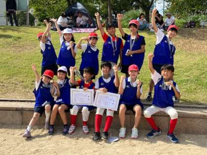 表彰式の後、リレー出場者みんなで記念撮影しました。 やったぞ〜、優勝!