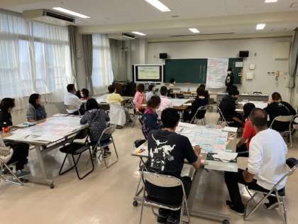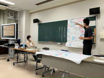 授業内のいいところ、改善すべきところなどを班ごとに討議します。討議後にそれぞれの班から発表します。