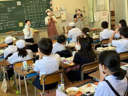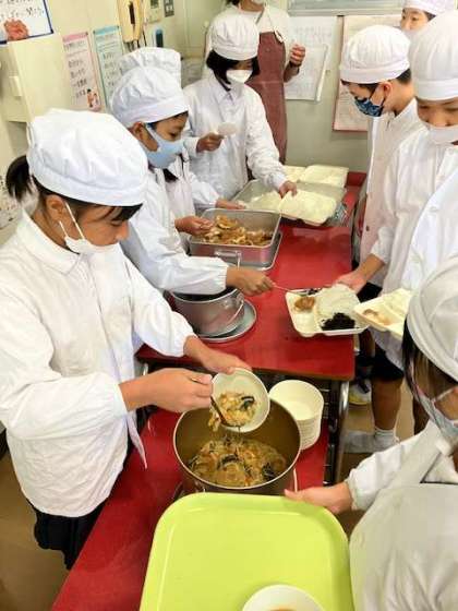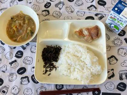 今日の給食献立は、ごはん・赤魚のみぞれかけ・牛ひじきそぼろ・みそ汁・牛乳です。
