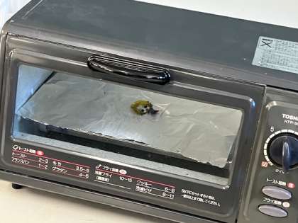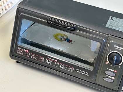 トースターで温めると、すぐにちっちゃくなって完成です。かわいいキーホルダーができました。