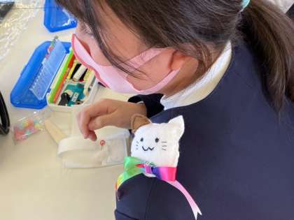 手芸クラブは、マスコットづくりが続いています。完成した子もでてきました。みんなそろそろですが、上手に糸と針を扱っています。
