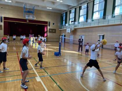 室内運動クラブは、今日はバレーボールです。ラリーはなかなか難しそうですが、少しずつですができるようになってました。