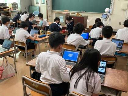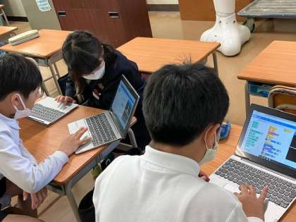 プログラミングクラブでは、ペッパーくんにプログラミングをする活動が続いています。今日は、ペアで取組みます。