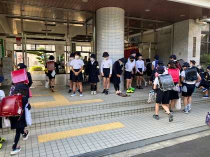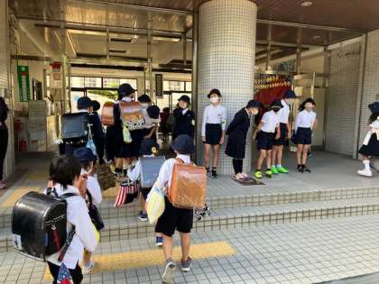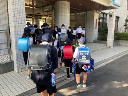児童会の運営委員さんたちが玄関で登校児童に「おはようございま〜す!」と元気にあいさつをしてくれました。