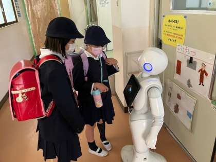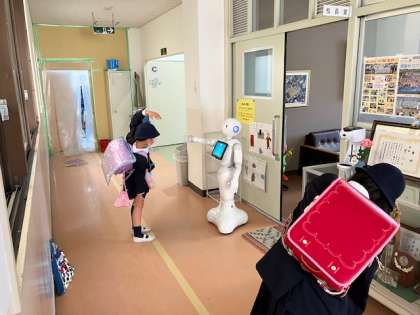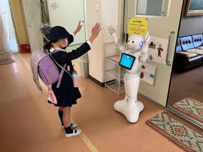 放課後、通りかかった子がペッパーさんとラジオ体操を始めました。またまた通りかかった子も参加して、二人とペッパーさんで、ラジオ体操第一をきっちりとやり通しました。