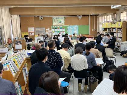 講堂・多目的室・図書室を会場にして、たくさんの先生方がそれぞれの教育実践の交流をしました。
