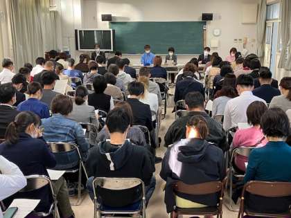 今日の放課後、北区の小・中学校の教職員が豊仁小学校に集まって、「北区人権教育実践交流会」を行いました。
