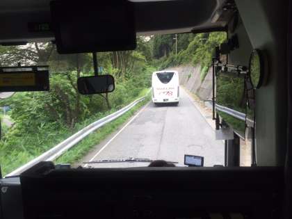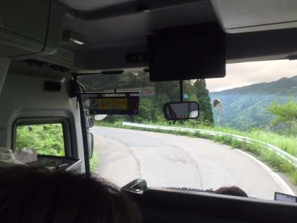 いよいよ山道にさしかかりました。あと30分間ほどですが、クルマ酔いが心配です。