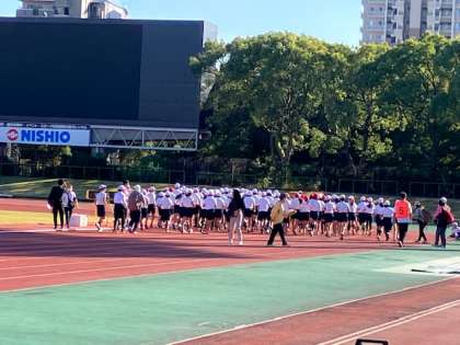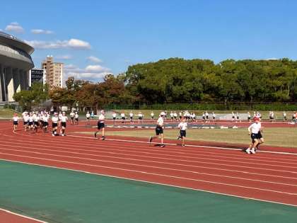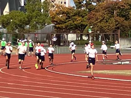 800メートル走が始まりました。数校ずつでレースをしています。豊仁小は堀川小とのセットでのレースです。