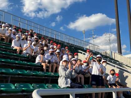 「ほうじん!チャチャチャ!」の応援が競技場いっぱいに広がっていました。応援は、一番ですね。