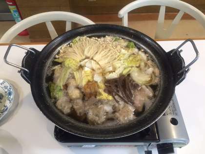 夕食は寄せ鍋です。真夏ですが、標高900メートルの高原は寒いぐらいなので鍋はぴったりです。