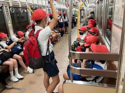 堺筋線はずいぶん空いていたので、座りました。途端に睡魔がきた子も。