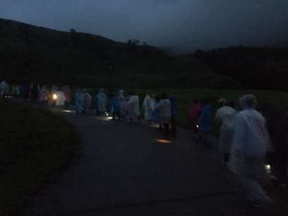 夕方に降った雨で地面が濡れていたのでキャンプファイヤーを明日に延期しまし他。代わりにナイトハイクで夜の高原を歩きました。