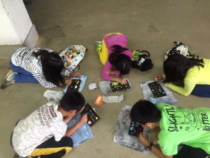 午前中は、焼き板に絵を描きました。