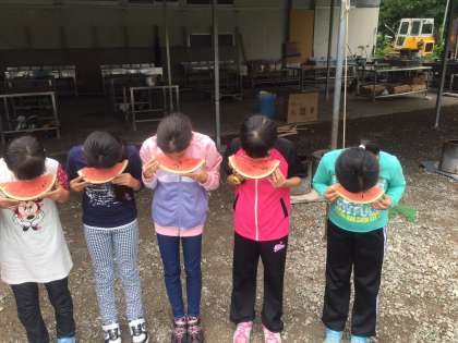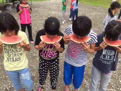 デザートは甘ーいスイカです。やっぱり外で食べると楽しいね。