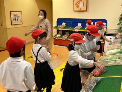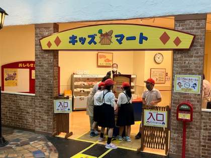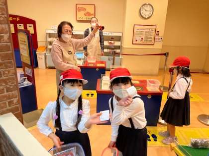キッズマートでお買物。千円ピッタリだと、鐘を鳴らしてくれます。