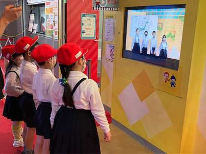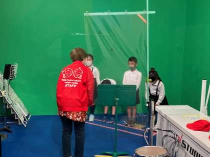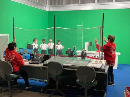 キッズスタジオでは、アナウンサーになって天気予報を読みます。