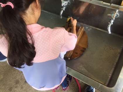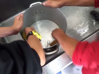 食事の後は洗い物。
