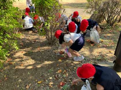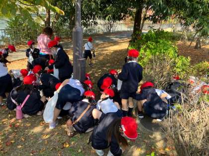 どんぐりがいっぱい落ちている木がありました。子どもたちは、「どんぐり祭りや〜!」と叫びながら拾い続けています。
