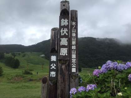鉢伏高原のモニュメントのところまで集合写真を撮りに行きました。