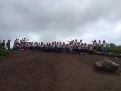 高丸山頂(1,080m)に到着。霧雨が降っていました。