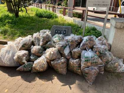ゴミ袋を集めると、たくさんのゴミ袋の山になりました。明日、清掃局の方が回収に来てくださることになっています。