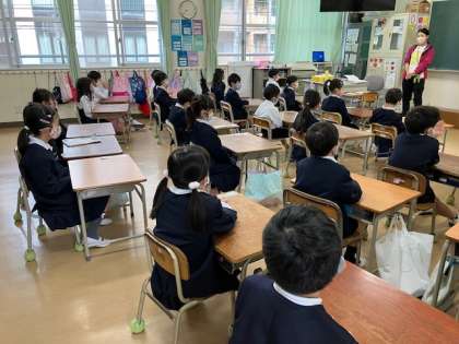 また、夕方、日が暮れるのが早くなってきているので、公園など外で遊んでいる場合は、早めに帰宅くるように、そして、知らない人に声をかけられた時にはどうすればいいか、「いかのおすし」のお話がありました。