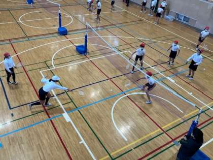 運動クラブはキックベースボール、室内運動クラブはバドミントン、マンガクラブはしおり作りです。