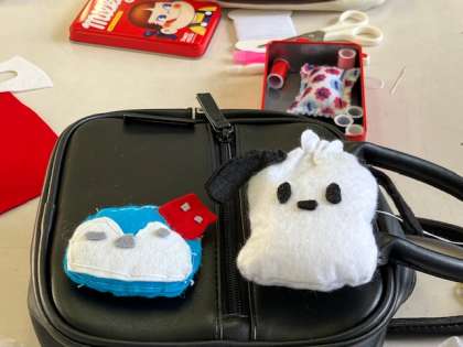 手芸クラブでは、マスコット作りの終盤です。どんどんかわいい完成品ができ始めました!