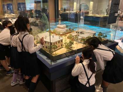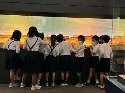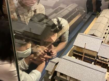 子どもたちは、ジオラマが大好きなようです。家並みのミニチュアの中を、食い入るように見ていました。