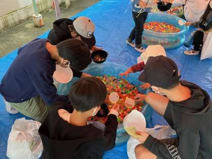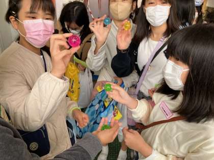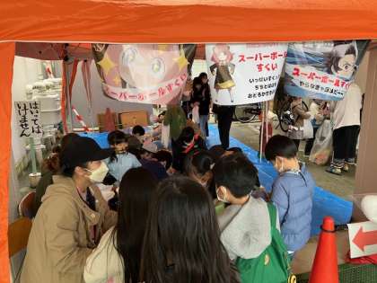 上手にたくさんすくえた子も、うまくすくえなかった子も、みんな、後で大きくてきれいなスーパーボールを貰えました!