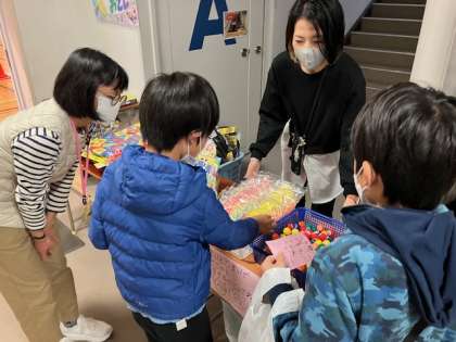 チケットにチェックをしてもらって、お菓子やポップコーン、綿菓子をもらいます。