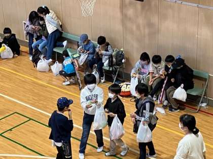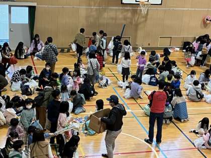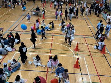 一通り、みんなゲームをし尽くしたようで、もらったお菓子やおもちゃを見せ合ったり、もらったおもちゃで遊んでます。