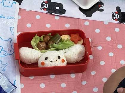 今からお弁当タイムです。いいお天気で、絶好のお弁当日和です。