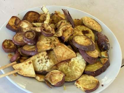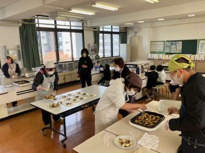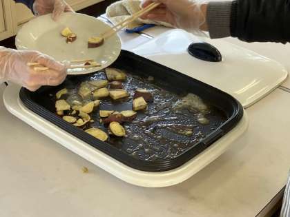 焼き芋にしたかったのですが、今度PTA行事で食べることができるので、今日は調理室で、先生たちがホットプレートでバター焼きにしてくれました。