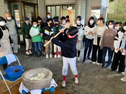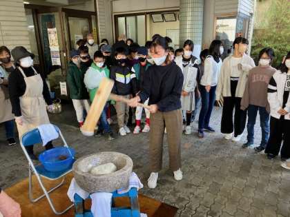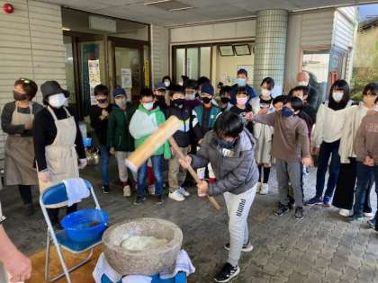今日の餅つきは、6年生を招待してくれています。