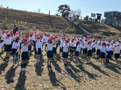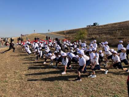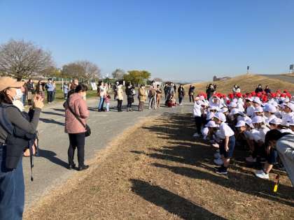 最後は、1・2年生です。入念に柔軟体操をした後、応援に駆けつけてくださったたくさんの保護者の皆さんに、「ありがとうございます」「がんばります!!」と大きな声であいさつをしました。